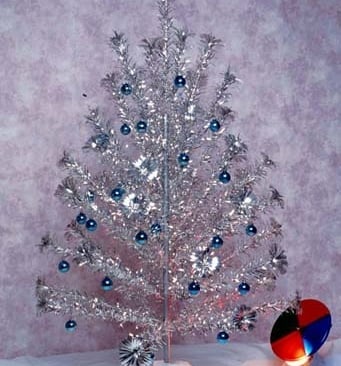 Aluminum Christmas tree 1960's This was my mom's pride and joy. It stood on top of our grand piano in the living room complete with blue Christmas balls and color wheel.