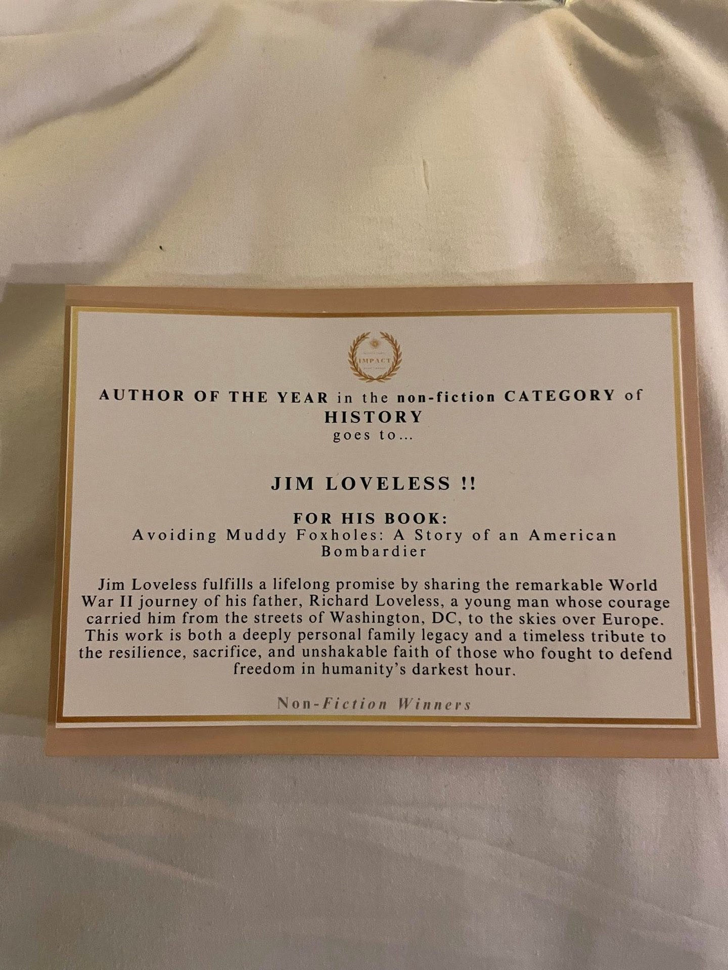 First place Best Military Non-fiction Novel