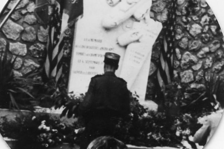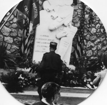 Dedication of the monument to the five fallen crew members of Slightly Dangerous, Sept. 6, 1947.