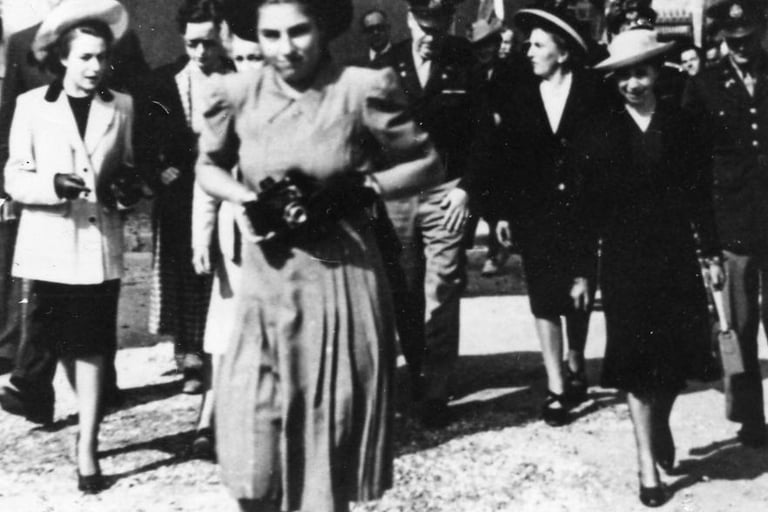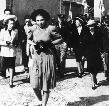 Susan Bouchy at the dedication of the monument to the five fallen crew members of Slightly Dangerous. Sept. 6, 1947.