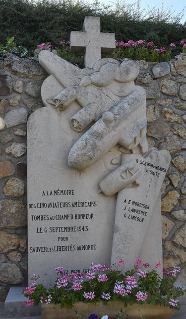 Memorial to the five crew members of the B-17 Slightly Dangerous who died Sept. 6, 1943.